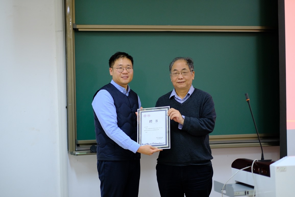 学生职业生涯发展校内导师,院长张玉志向王闯颁发聘书。