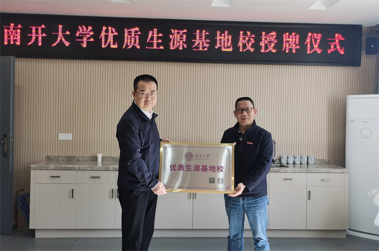 白承铭代表南开大学向三所中学授予“南开大学优质生源基地校”称号。